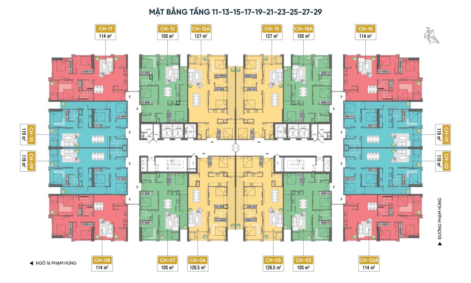 • Số lượng: 16 căn/tầng với loại căn: 3PN và 3PN+1