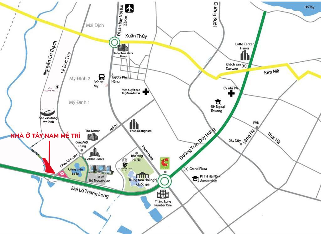 - Gần Bộ Ngoại giao, sân vận động Mỹ Đình, Big C Thăng Long