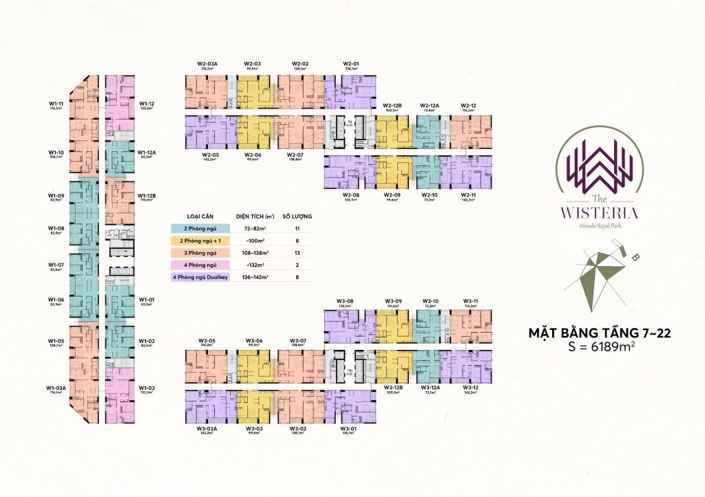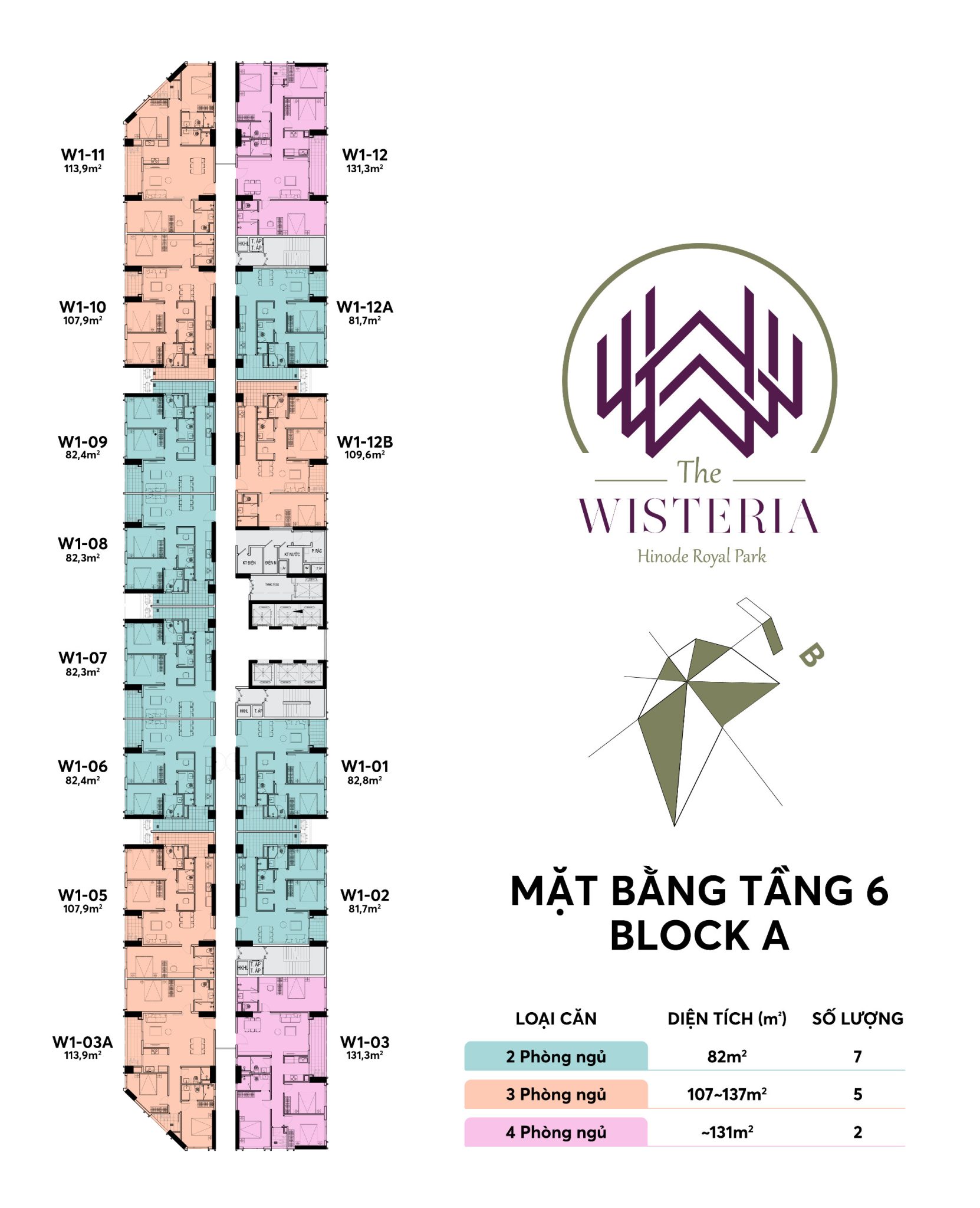 Các căn hộ tại The Wisteria Hidone Royal Park được thiết kế chuẩn mực theo phong cách Anh quốc với các diện tích từ 73m2 đến 142m2 đa dạng các loại hình căn hộ từ 2 phòng ngủ cho tới 4 phòng ngủ. căn hộ Mezza, Duplex, Penthouse. Các căn hộ ở The Wisteria được ví như những “tác phẩm nghệ thuật đắt tiền” sang trọng và độc đáo.